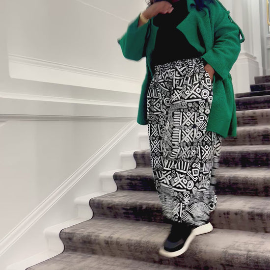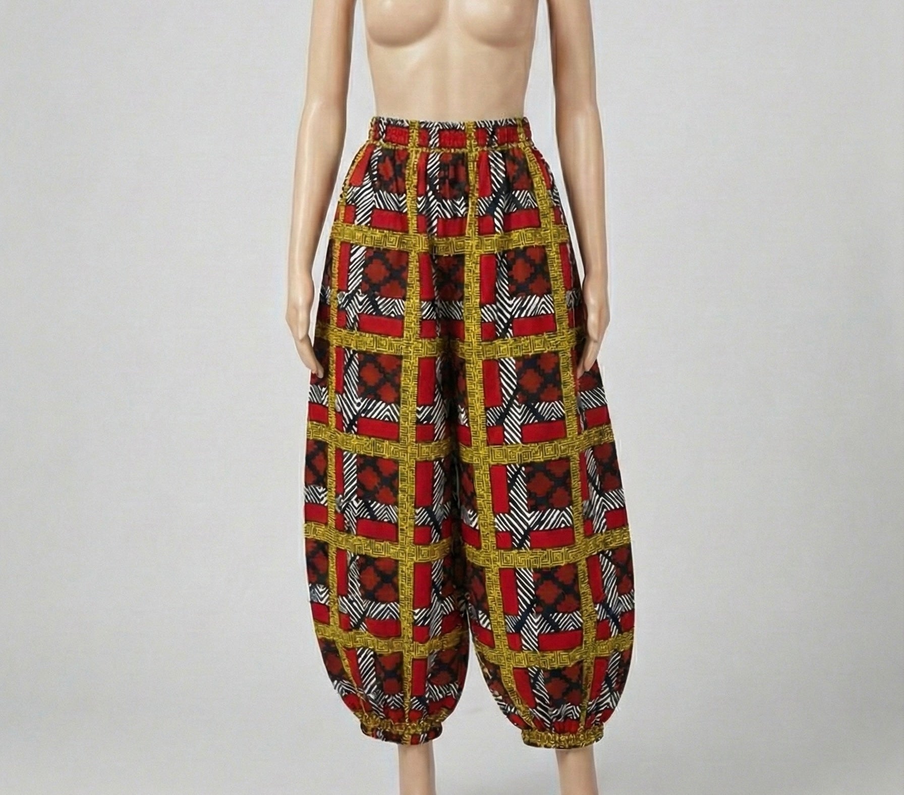 Step into bold expression with our Afro-Futurist Balloon Pants — a wearable canvas of culture, comfort, and confidence. Crafted from vibrant geometric print fabric, these voluminous trousers are designed for the woman who moves with purpose and dresses with power.