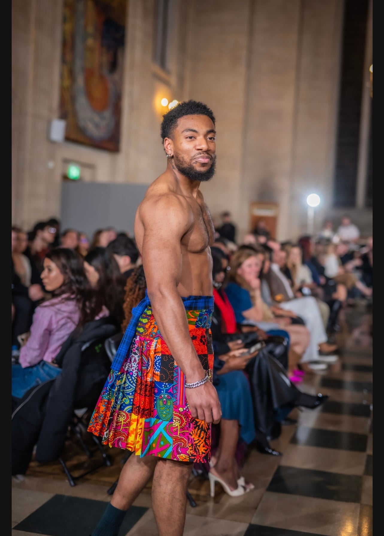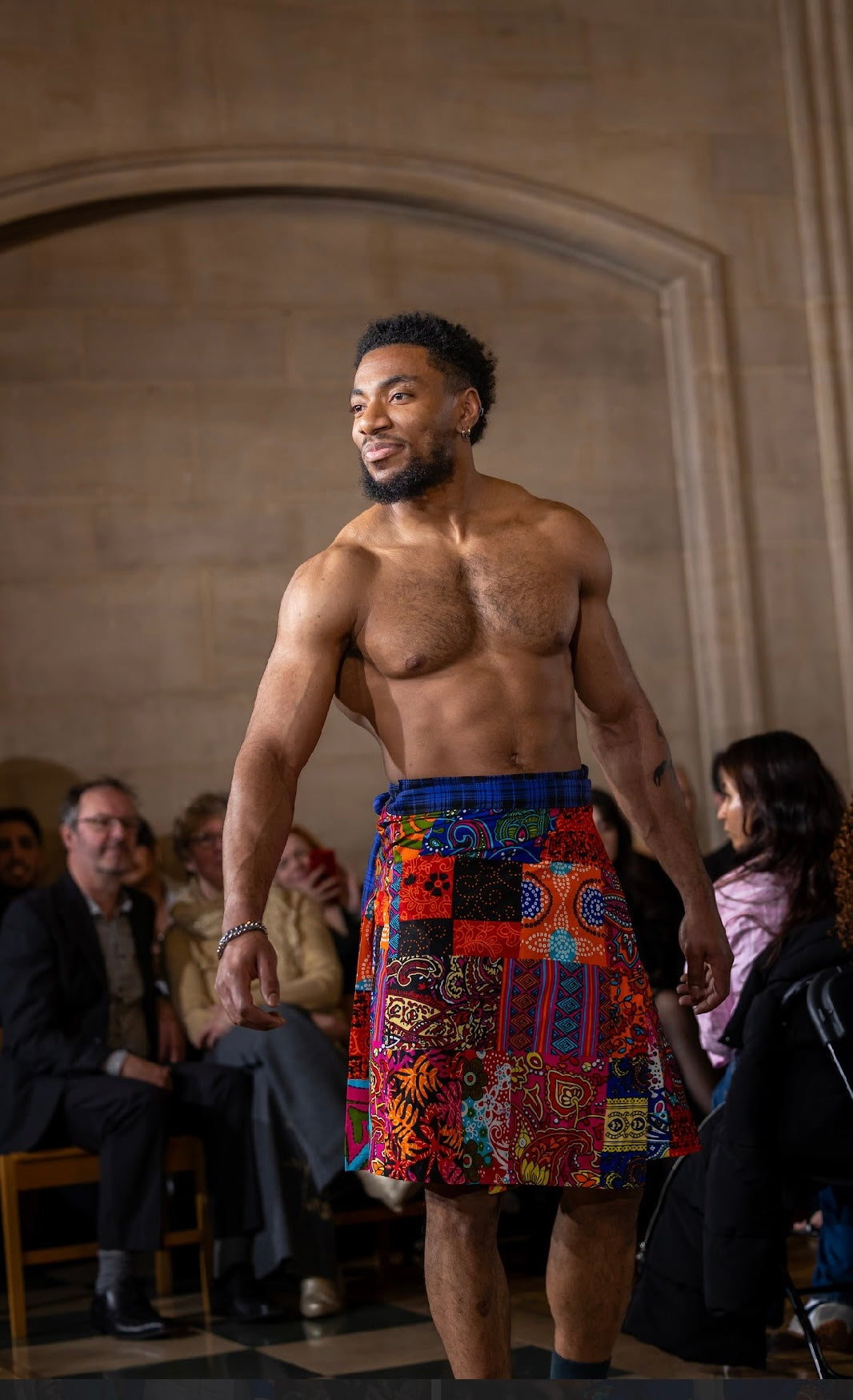 Celebrate the perfect union of African and Scottish heritage with this distinctive Ankara kilt. Designed with vibrant Ankara fabrics, the kilt showcases bold patterns and colors that pay homage to African culture, while staying true to the iconic pleated structure of the traditional Scottish kilt. This piece is more than clothing; it's a statement of cultural fusion, bringing together the elegance of Scottish design with the dynamic artistry of African textiles. Perfect for any occasion where you want to stand out, this kilt redefines cross-cultural fashion with sophistication and flair.