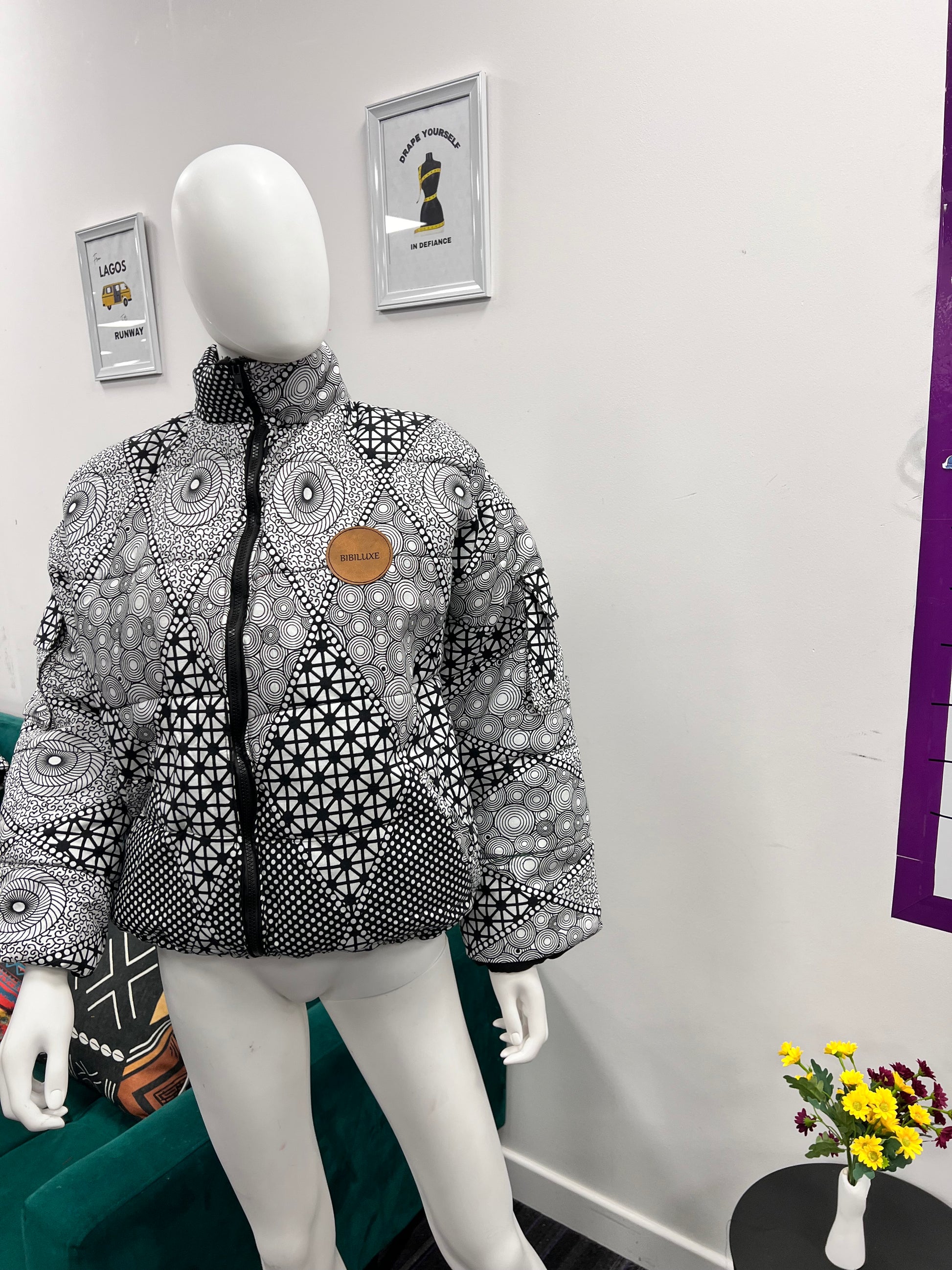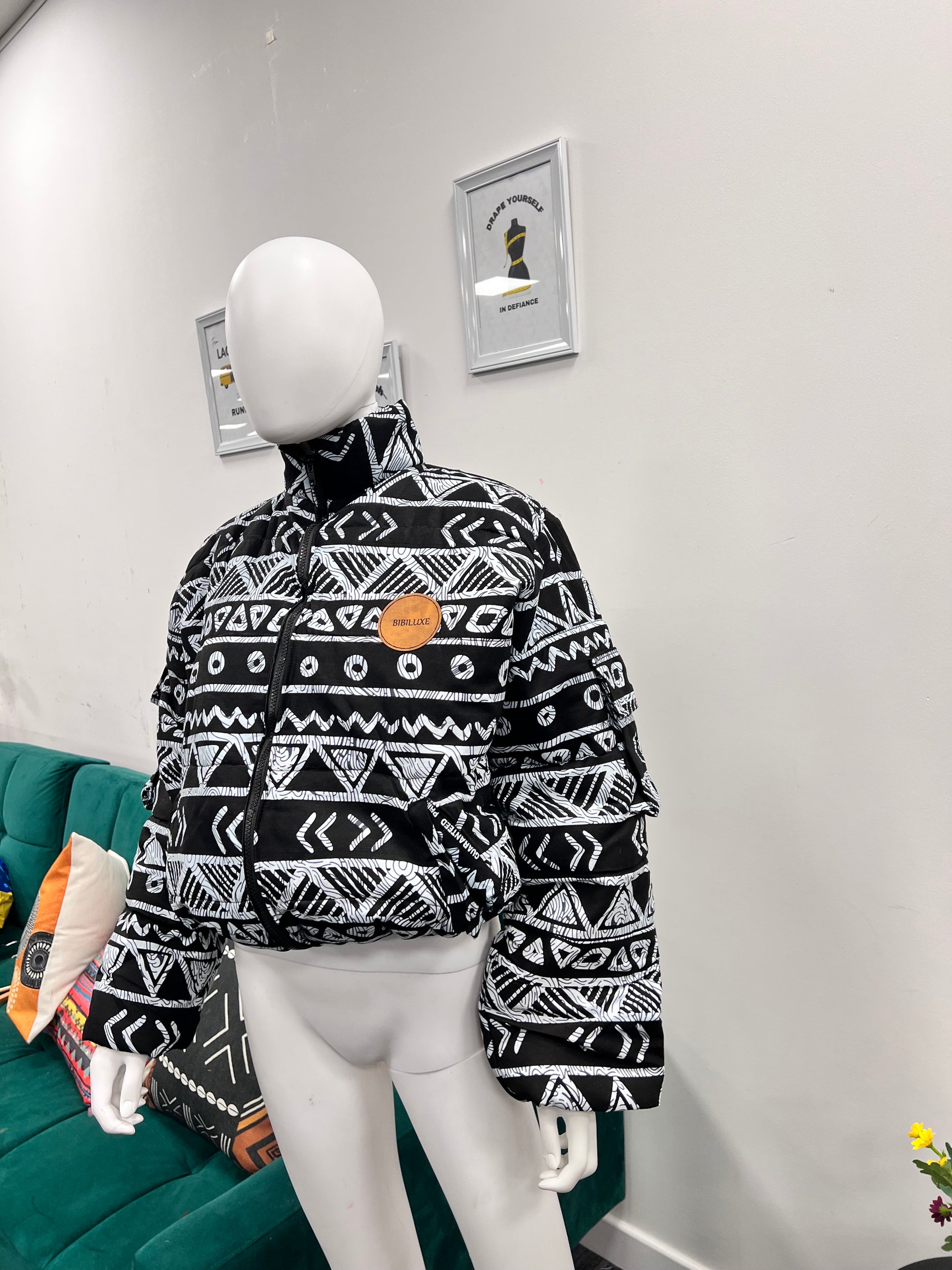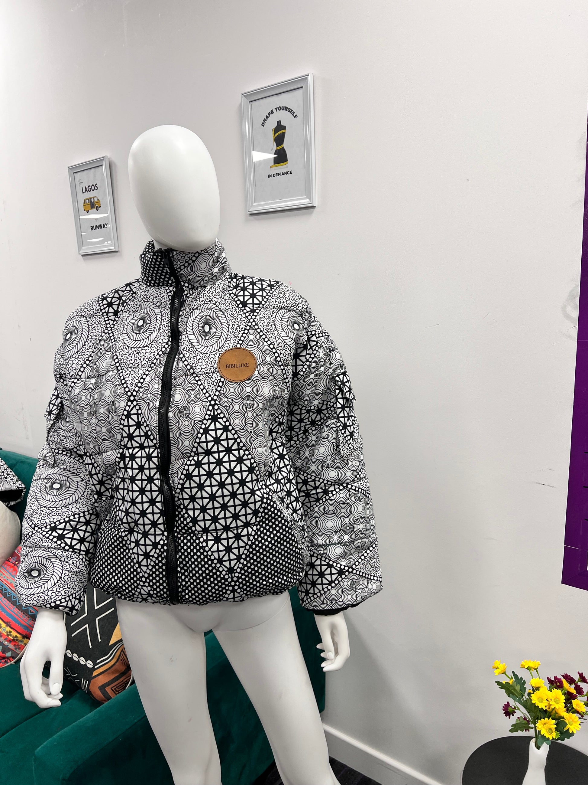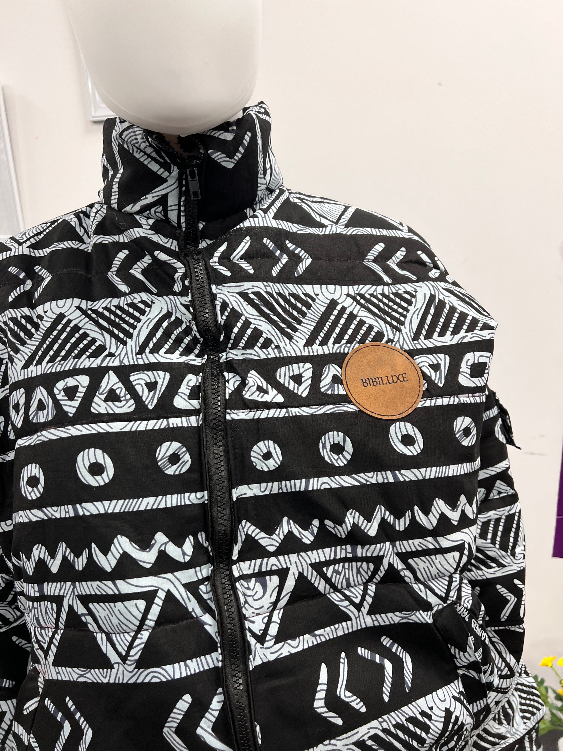 Introducing Tàlàbí—a standout puffer jacket crafted for maximum impact and warmth. Made from 100% cotton Ankara fabric