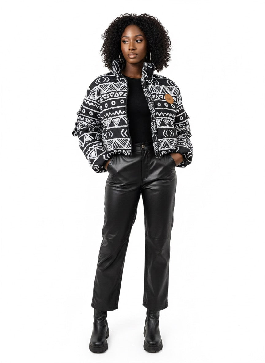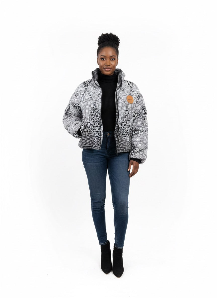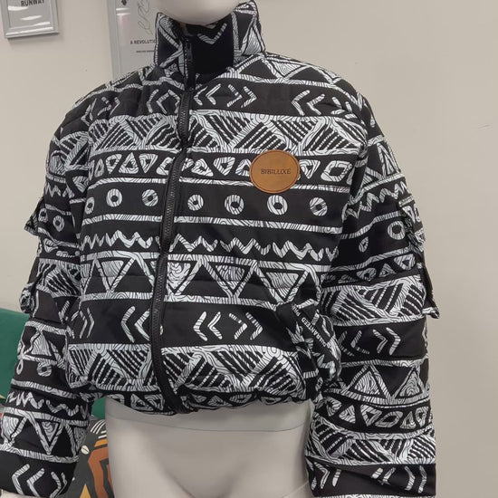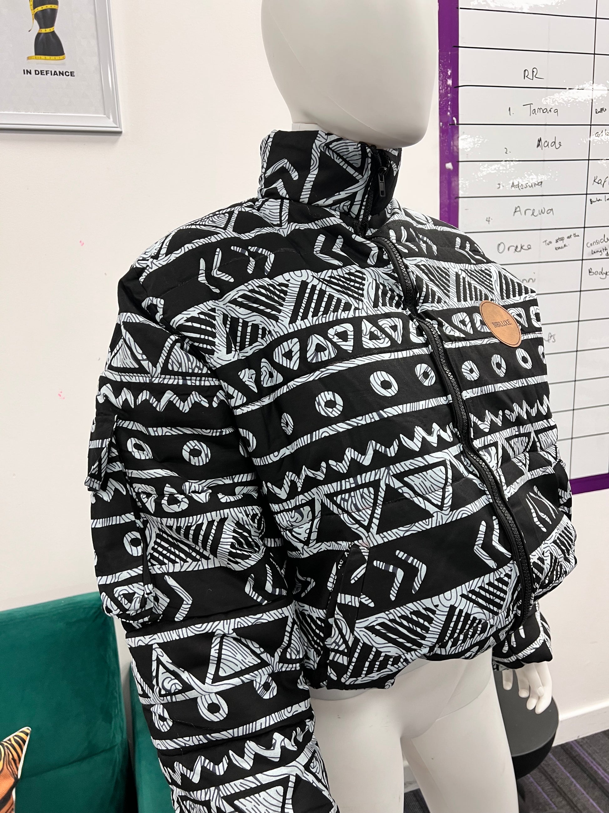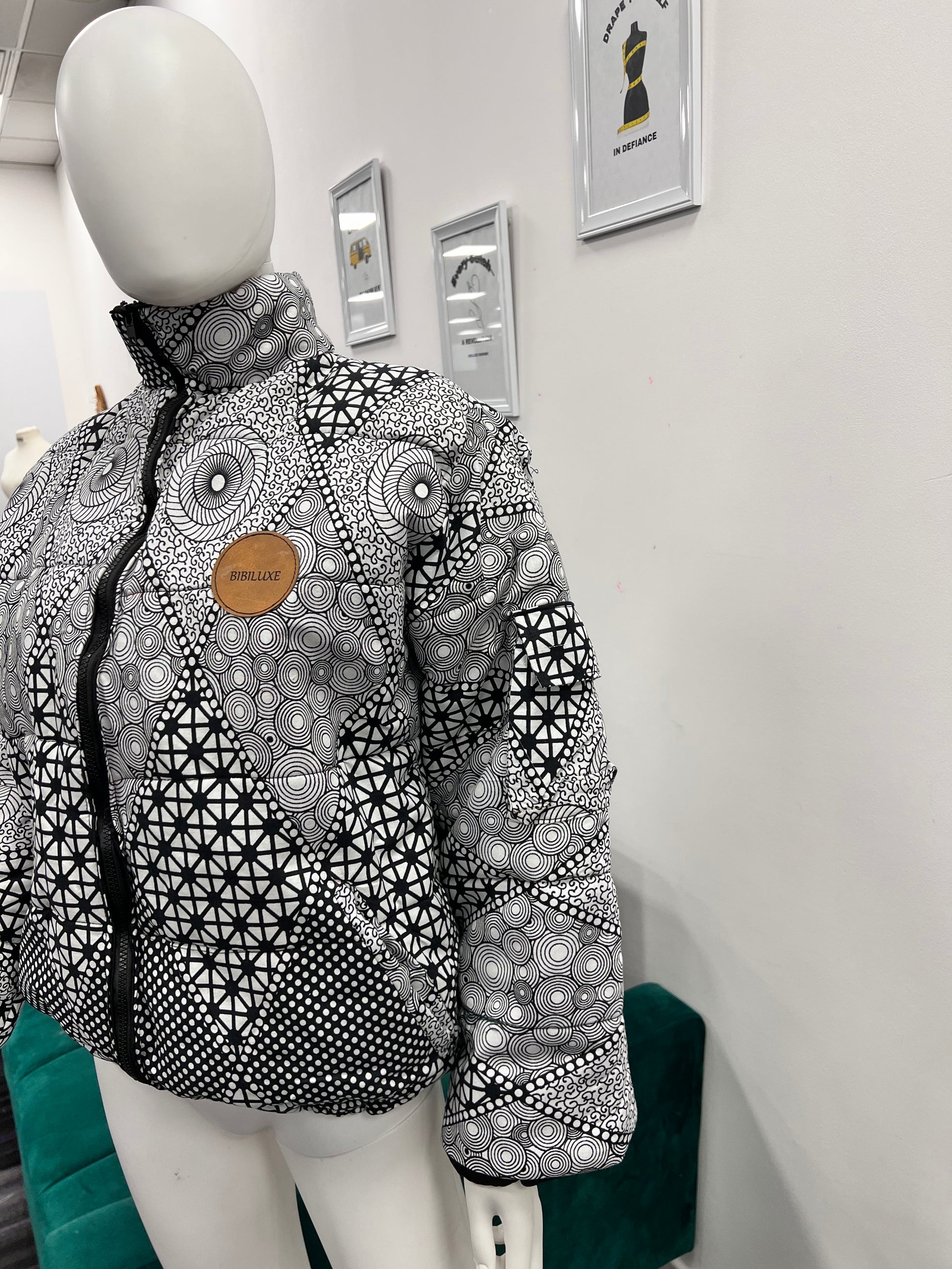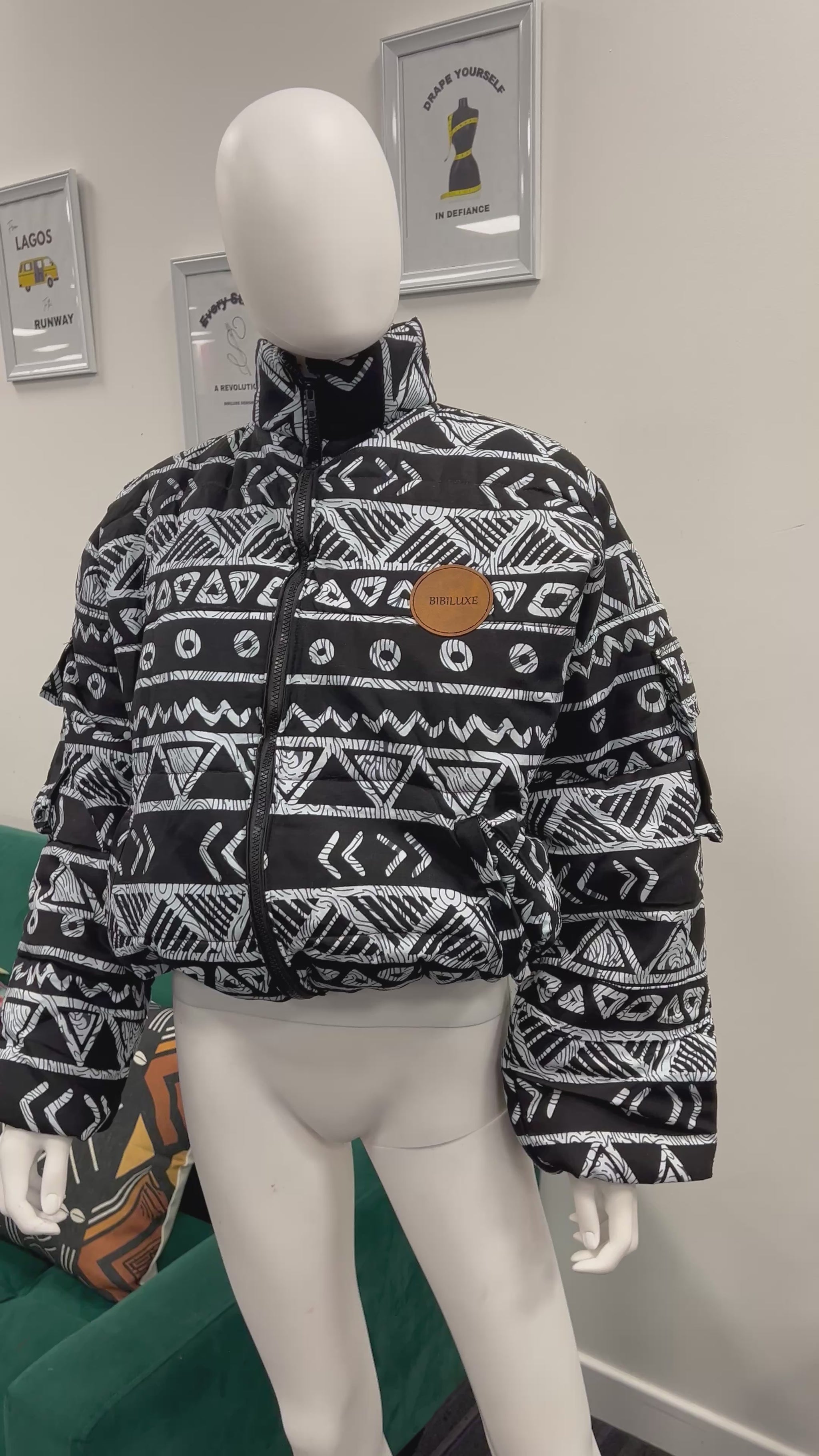 Introducing Tàlàbí—a standout puffer jacket crafted for maximum impact and warmth. Made from 100% cotton Ankara fabric